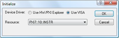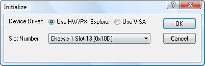 The Initialize dialog supports two different device drivers that can be used to access and control the board: