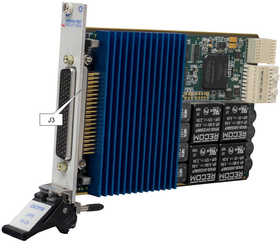 The Figure below shows the GX3116e and the front panel interface J3 connector: