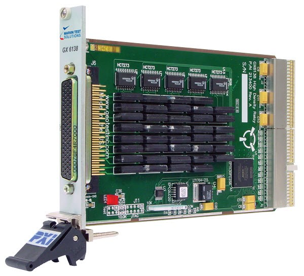 The GX6138 is a 6U PXI board featuring 38 channels of single pole single throw switches with one connector J6 and one chassis ground jumper - JP1.