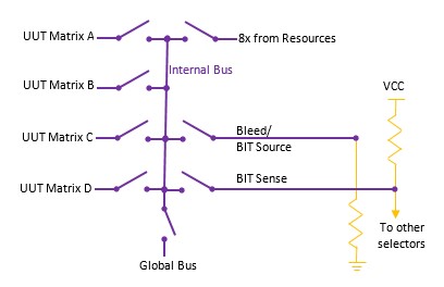 bus to any one of the four UUT matrices or to the global bus. The selector