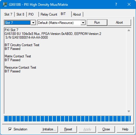 Simulation – Selects simulation mode. When the check box is checked when the Initialize button is clicked, the panel will operate in simulation mode. If the check box is not checked when the Initialize button is clicked, the panel will control actual hardware.