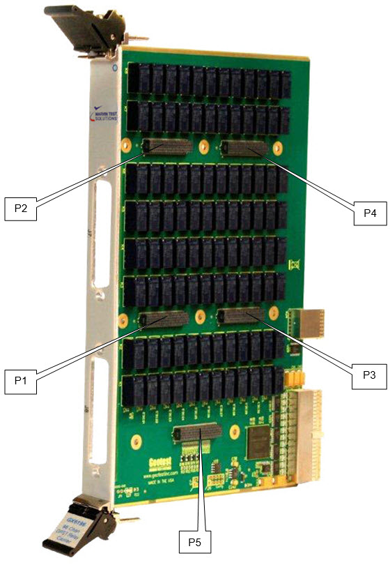 The figure below shows the GX6196 board connectors which provide connection to the user defined module board: