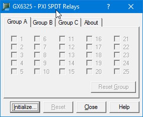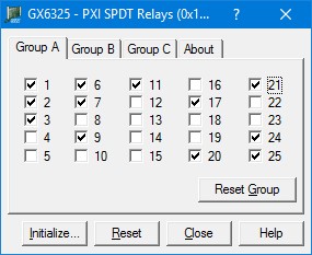 To open the virtual panel application, select GX6325 Panel from the Marvin Test Solutions, GXSW menu under the Start menu. The GX6325 virtual panel opens as shown here: