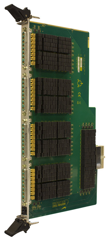 The GX6032 Rear Transition Module (RTM) connects to the back side of the GX7016 backplane. The RTM is designed to connect up to 32 external instrument inputs to the backplane's 16 global bus lines via a 32x16 matrix. The RTM is controlled by an accompanying GX6256 or GX6192 board which is connected to the PXI slot adjacent to the RTM.