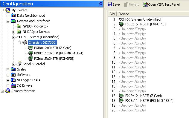 Note: HW v3.0 and above automated the process described below. You can configure the chassis from the HW PXI/PCI Explorer applet that can be found the Windows Control Panel using the Scan for New Devices and clicking on the Save button.