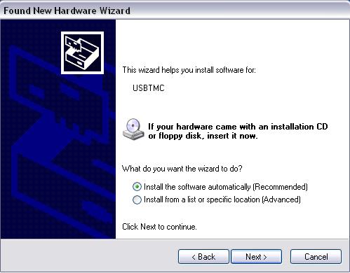 - When Windows finds the new hardware, install either the VISA (if you have installed NI VISA for example) USBTMC driver or the Geotest HW driver
